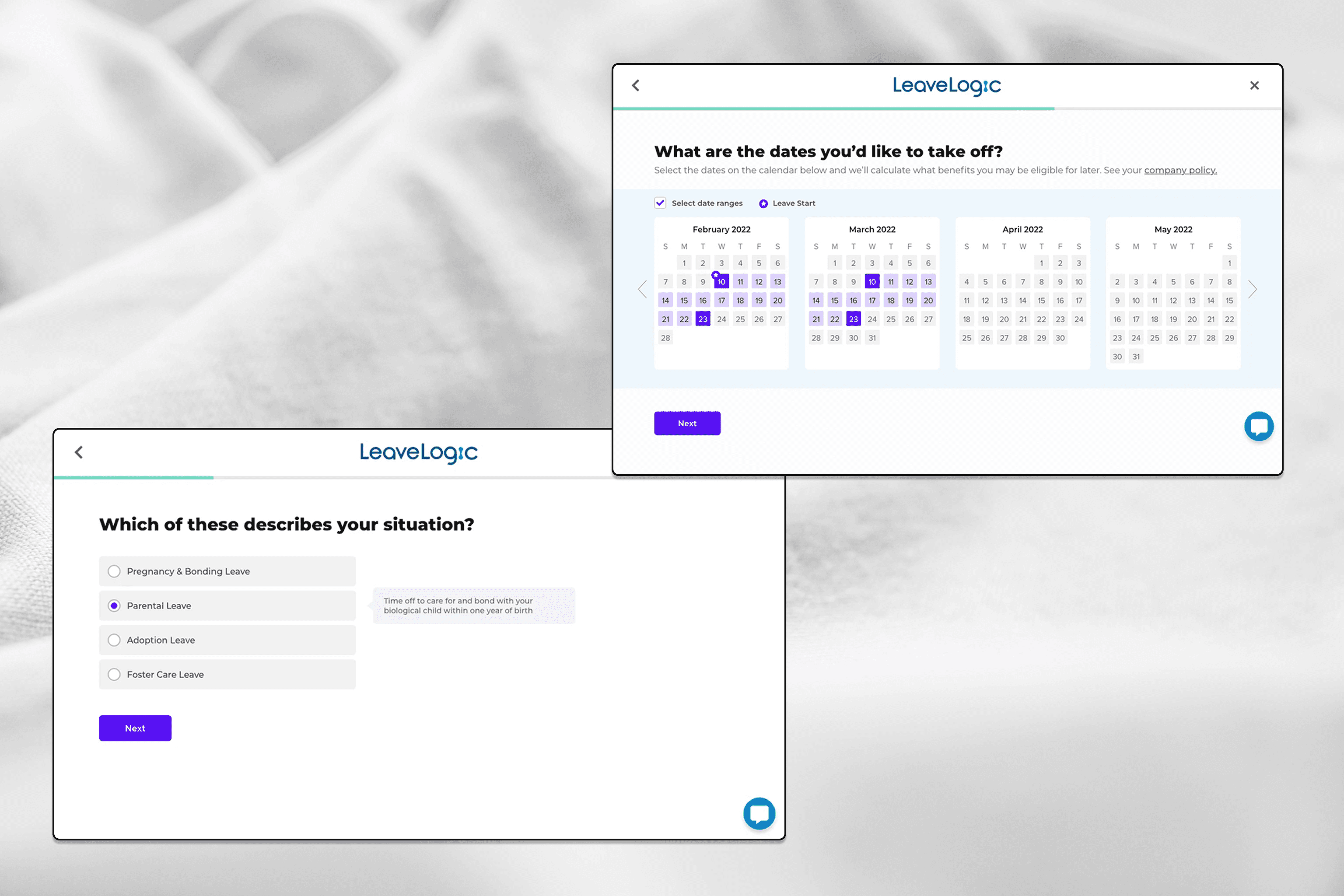 I redesigned elements of the onboarding experience from being a one-size-fits-all solution to being tailored to the specific type of leave (i.e. parental, bereavement, etc.) a user was taking.