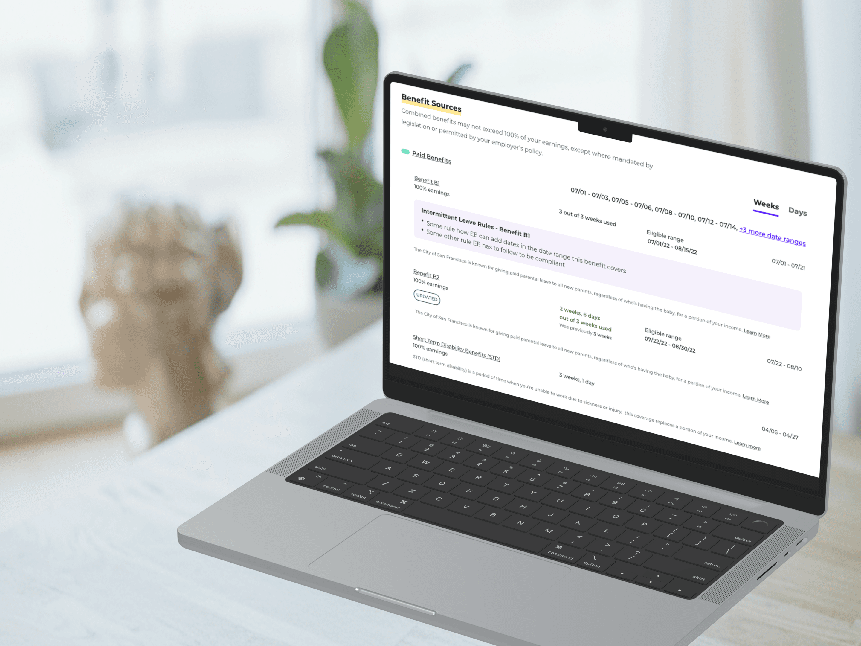 I also created features that allowed users to get more granular information on the benefits they were legally entitled to, as well as editing their LeavePlan and breaking up time off on leave into intermittent blocks of time not taken consecutively.