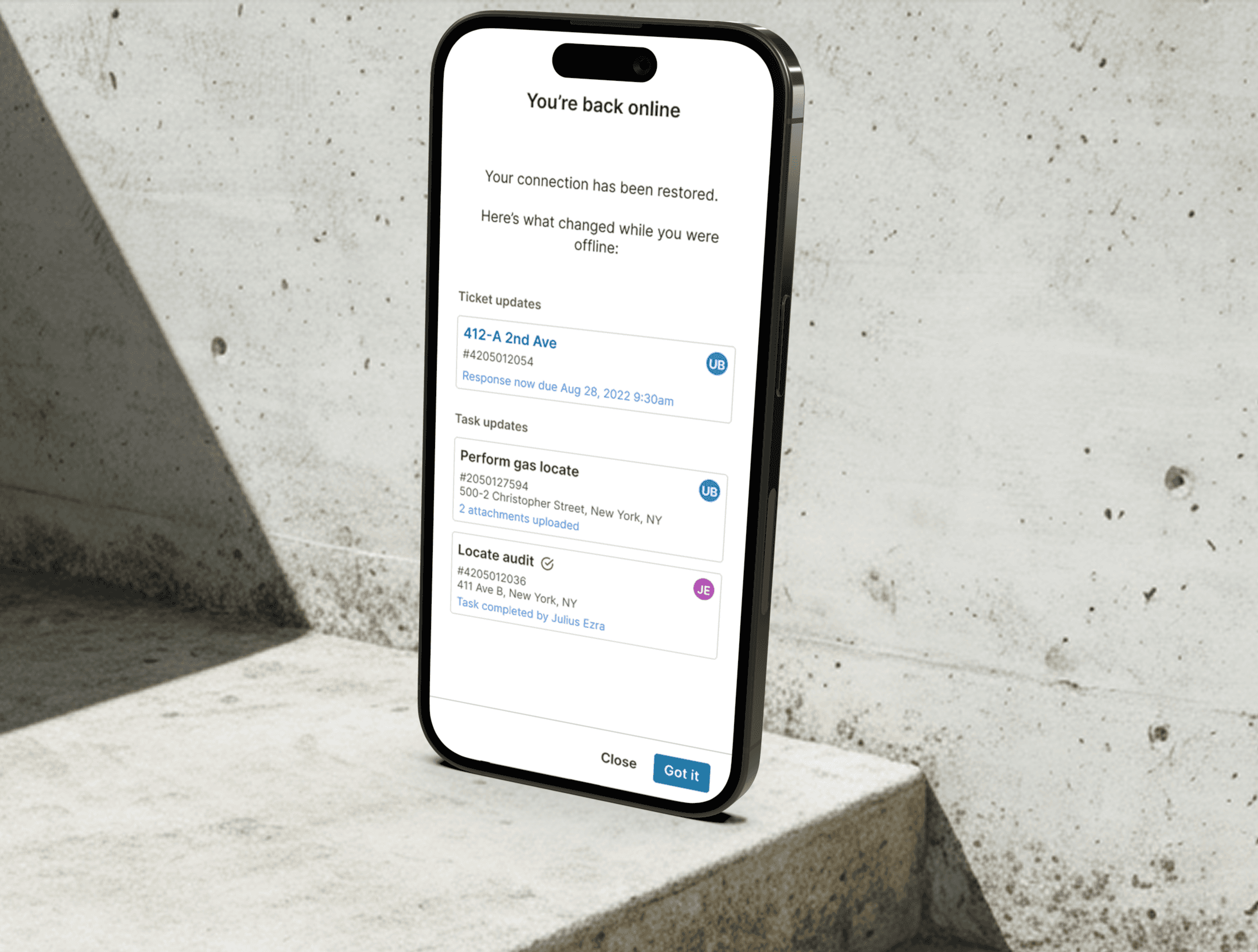 Without a functional tool in low-connectivity areas, damage prevention inspectors spent more time documenting site audits by hand, leading to less site audits - posing significant safety and compliance risks.